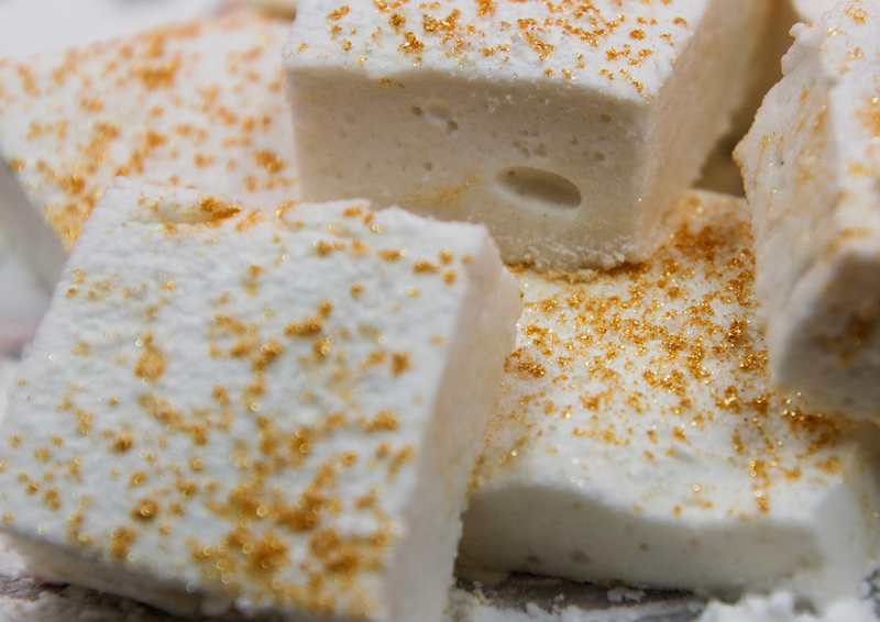 Pour the marshmallow mixture into a greased or parchment-lined glass baking dish. Optionally, smooth the top and sprinkle rose powder evenly over the surface. Refrigerate for at least 4 hours or until firm.